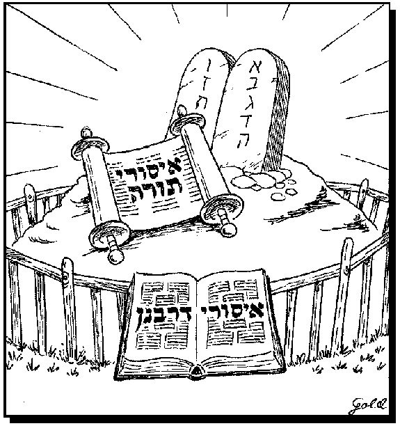 The third thing the Men of the Great Assembly said was, "Make a fence around the Torah". In the picture we see an actual fence surrounding the Ten Commandments and the Torah. What is this fence? Who put it there? What does it mean?