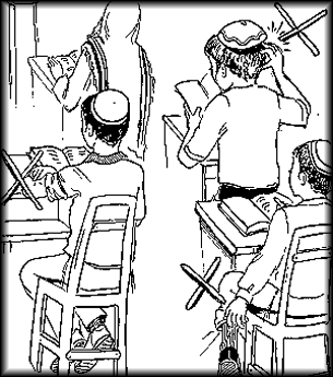 In the middle of davening or learning, a person should not touch the top part of his arms. Also, he may not scratch his head. If a person did touch these places, then he should wash his hands. If he is not near water, then he can wipe his hands on something. He should be sure that he rubs both hands completely.