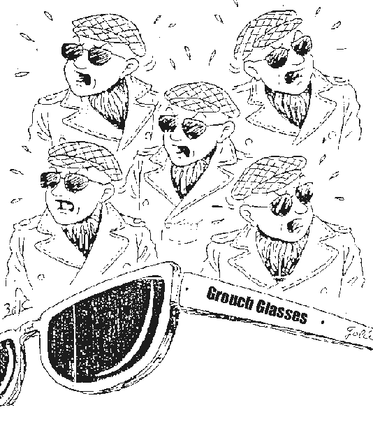 This man is wearing "grouch glasses" - whichever way he looks and whatever he looks at he manages to see people and things which make him upset and angry.