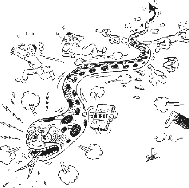 Anger is like a dangerous and poisonous snake which is out of control. It frightens and hurts people and destroys everything in its path.